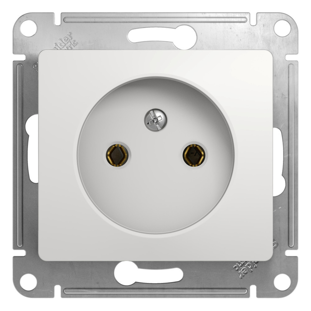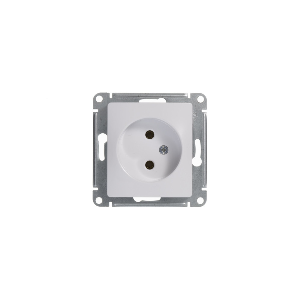 Механизм Systeme Electric (ранее Schneider Electric) серии Glossa (цвет белый) розетки одинарной без заземления и без шторок подходит для сетей 250 В, на ток 16 А. Выполнен из материала PС+ASA, стойкого к УФ-излучению и появлению царапин. Эргономичные клеммы розеток расположены в один ряд.