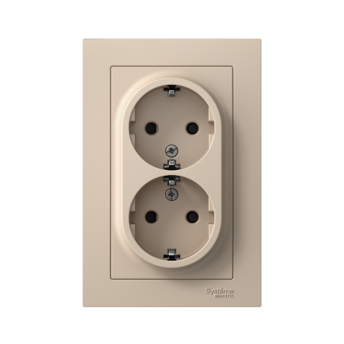 Розетка двойная в сборе Systeme Electric (ранее Schneider Electric) серии AtlasDesign в цвете песочный с заземлением и шторками подходит для сетей 250 В, на ток 16 А. Заземляющий контакт обеспечивает дополнительную защиту от удара электрическим током. Лицевые детали из качественного ABS-пластика, устойчивого к царапинам и УФ-излучению. Двойная розетка позволяет подключить два устройства в одном месте. Изделие поставляется в комплекте с рамкой того же цвета.