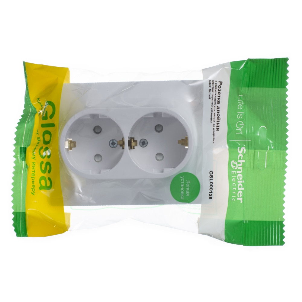 Розетка двойная Systeme Electric (ранее Schneider Electric) серии Glossa (в сборе, цвет белый) с заземлением и шторками подходит для сетей 250 В, на ток 16 А. Заземляющий контакт обеспечивает дополнительную защиту от удара электрическим током. При наличии заземления электрический потенциал уходит в землю, защищая человека. Выполнен из материала PС+ASA, стойкого к УФ-излучению и появлению царапин. Двойная розетка позволяет подключить два устройства в одном месте.