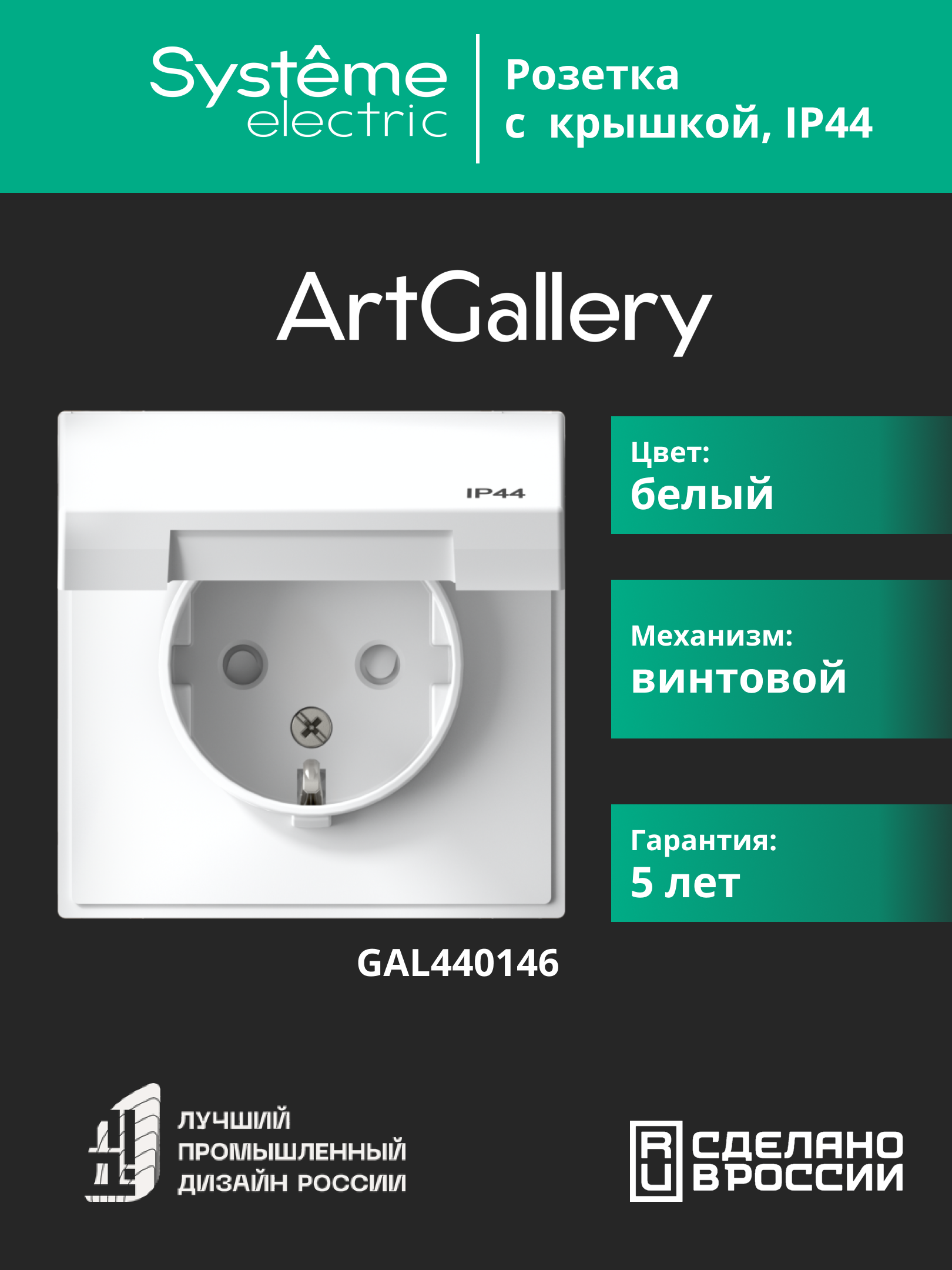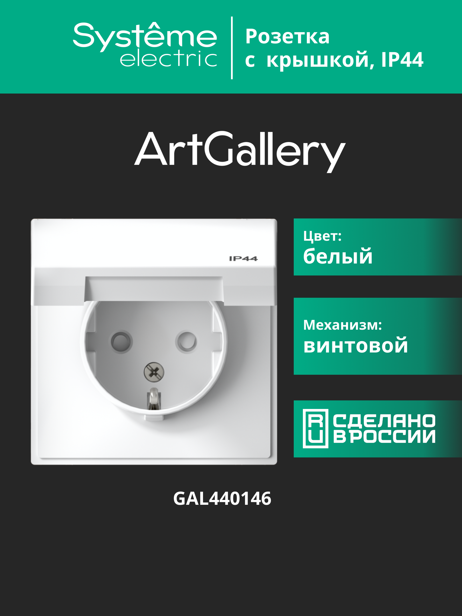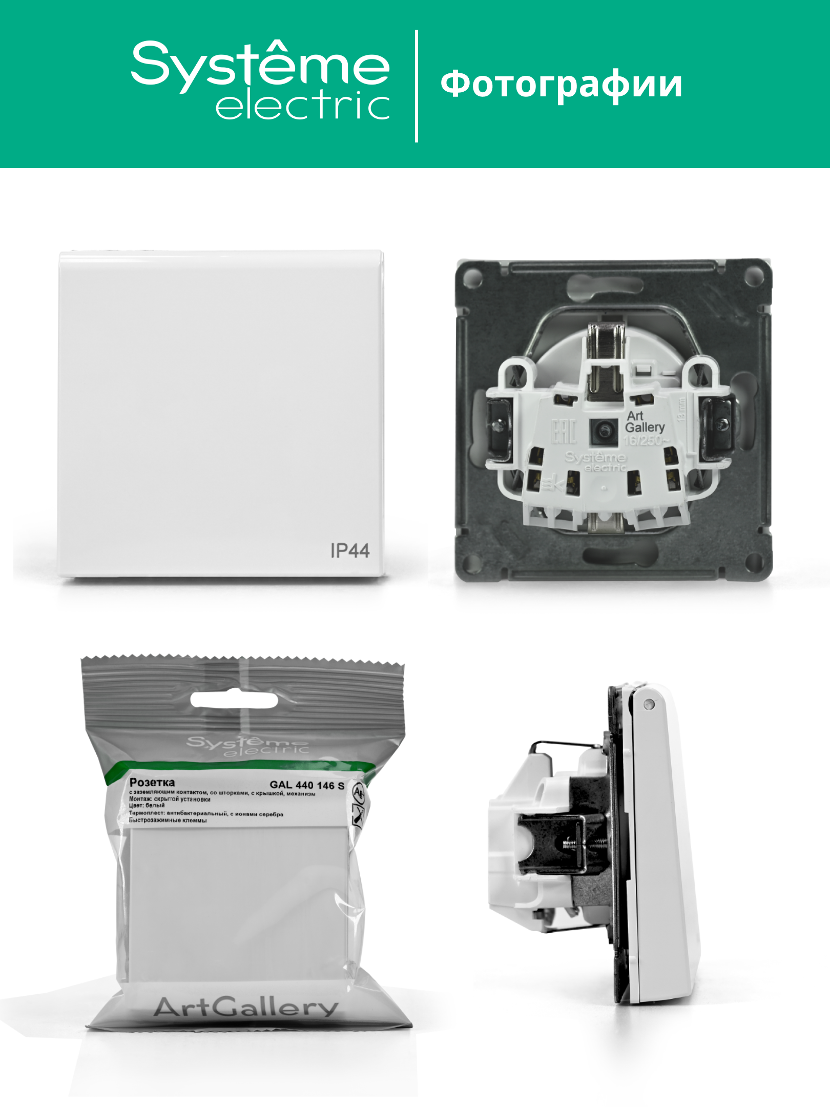Механизм Systeme Electric серии ArtGallery Aqua в цвете белый розетки одинарной с заземлением, шторками и крышкой подходит для сетей 250 В, на ток 16 А.Пластик с ионами серебра в белом цвете обеспечивает антибактериальный эффект.Изделие со степенью защиты IP44 обеспечит безопасность использования в ванной и на кухне.Несмотря на внешнее сходство, конструкция рамок серии ArtGallery Aqua отличается от конструкции рамок ArtGallery. Механизмы и рамки со степенью защиты IP20 несовместимы с механизмами и рамками со степенью защиты IP44.Лучший промышленный дизайн (по итогам премии Минпромторг 2023).