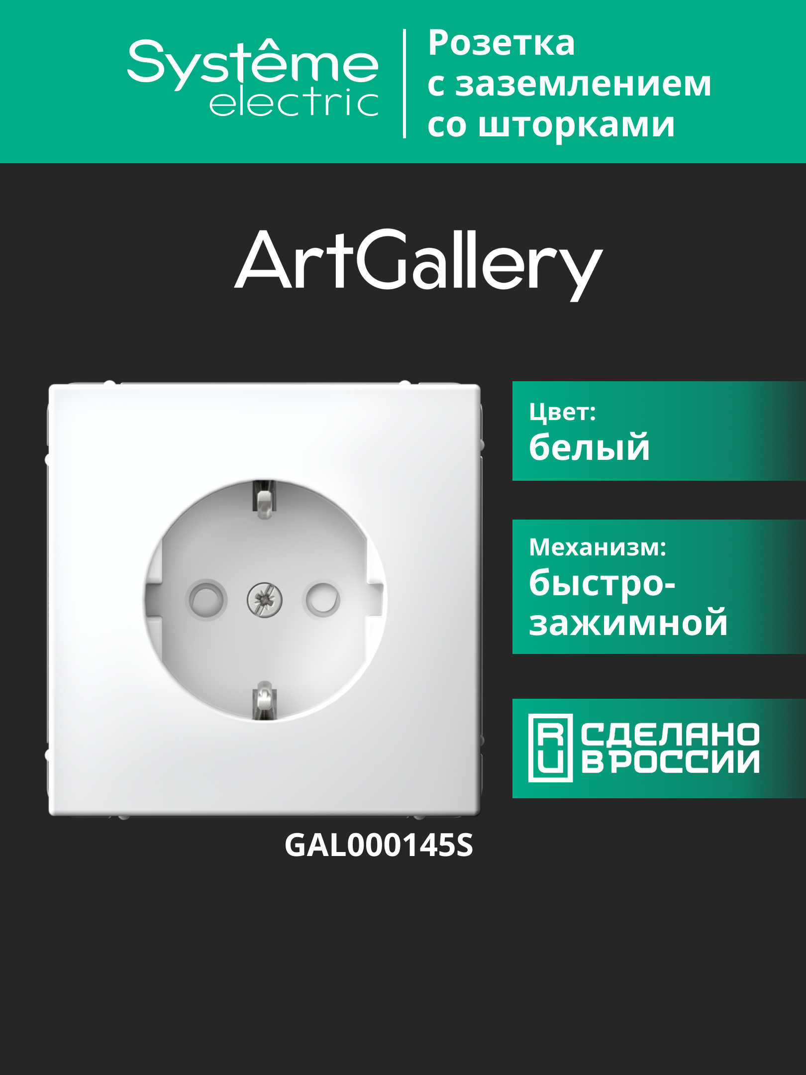 Механизм Systeme Electric серии ArtGallery в цвете белый розетки одинарной с заземлением и шторками подходит для сетей 250 В, на ток 16 А.Пластик с ионами серебра в белом цвете обеспечивает антибактериальный эффект.Новая технология быстрозажимных клемм позволяет ускорить монтаж на 25%.Лицевые детали из качественного ABS-пластика, устойчивого к царапинам и УФ-излучению.Лучший промышленный дизайн (по итогам премии Минпромторг 2023).