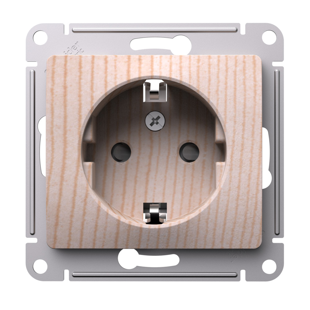 Механизм Systeme Electric (ранее Schneider Electric) серии Glossa (цвет сосна) розетки одинарной с заземлением и шторками подходит для сетей 250 В, на ток 16 А. Заземляющий контакт обеспечивает дополнительную защиту от удара электрическим током. При наличии заземления электрический потенциал уходит в землю, защищая человека. Выполнен из материала PС+ASA, стойкого к УФ-излучению и появлению царапин. Эргономичные клеммы розеток расположены в один ряд.