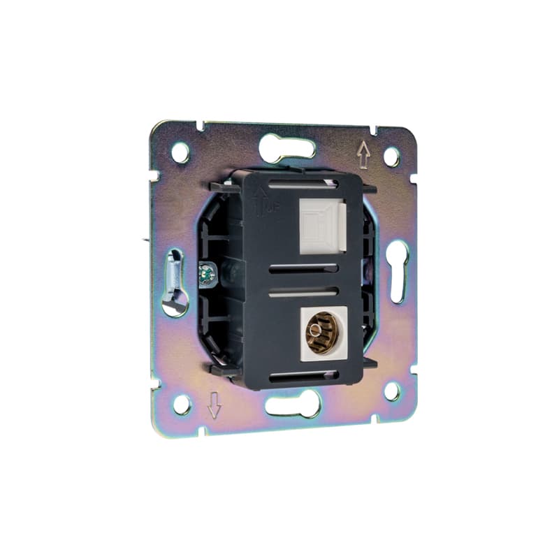 Механизм компьютерной и телевизионной розетки скрытой установки KRANZ предназначен для проводного подключения устройств к сети интернет посредством кабеля RJ45 CAT6, а также для подключения телевизионных приемников к коаксиальной кабельной сети. Используется в квартирах, офисах, в загородных домах.Модель механизма розетки обеспечивает высокоскоростное и бесперебойное соединение.Благодаря лаконичной форме корпуса и нейтральному белому цвету устройство гармонично дополнит любой интерьер.Технические характеристики: частота: 5.0...862.0 Гц.