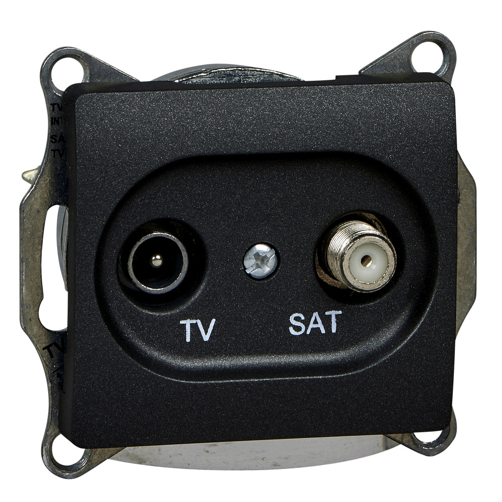 Механизм Schneider Electric Glossa (цвет антрацит) розетки TV-SAT проходной 4DB предназначен для подключения бытовой теле-, видео- и радиоаппаратуры к антенному кабелю при внутренней установке в жилых, общественных и промышленных помещениях.- Проходная розетка используется в начале и середине подключения «в линию».- Выполнен из материала PС+ASA, стойкого к УФ-излучению и появлению царапин.