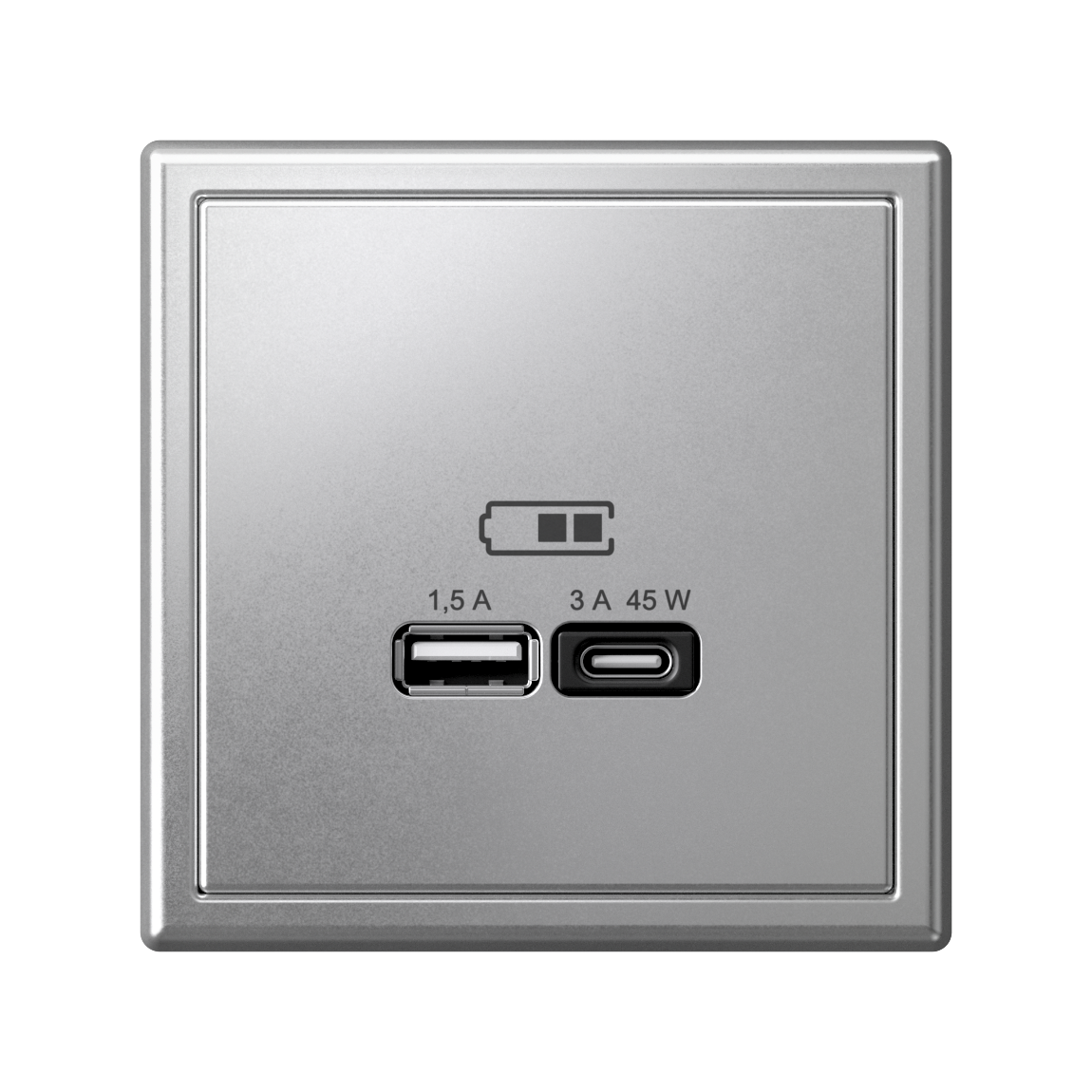 Розетка Systeme Electric серии ArtGallery в цвете алюминий двойная USB с разъемами типа A+C высокоскоростная.Классическое цветовое решение станет изюминкой любого интерьера.Самая современная USB-зарядка с двумя разъемами позволяет заряжать как стандартные мобильные устройства через разъем типа А, так и новейшие устройства с разъемом типа С.Мощность: тип-A – 7.5 Вт, тип-С 45Вт.Поддерживает современные протоколы быстрой зарядки QC, PD, последних версий.Лучший промышленный дизайн (по итогам премии Минпромторг 2023).
