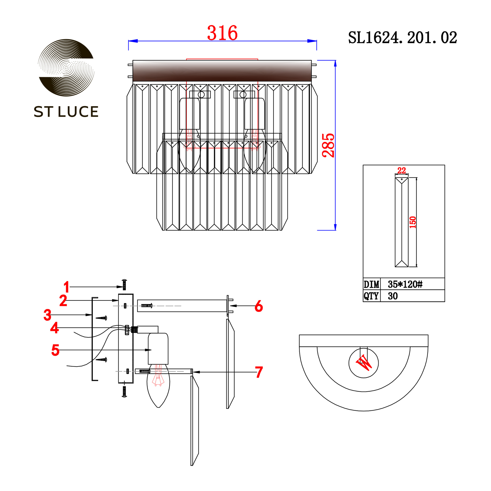 SL1624.201.02 Бра ST-Luce шампань/прозрачный E14 2*40W ERCOLANO