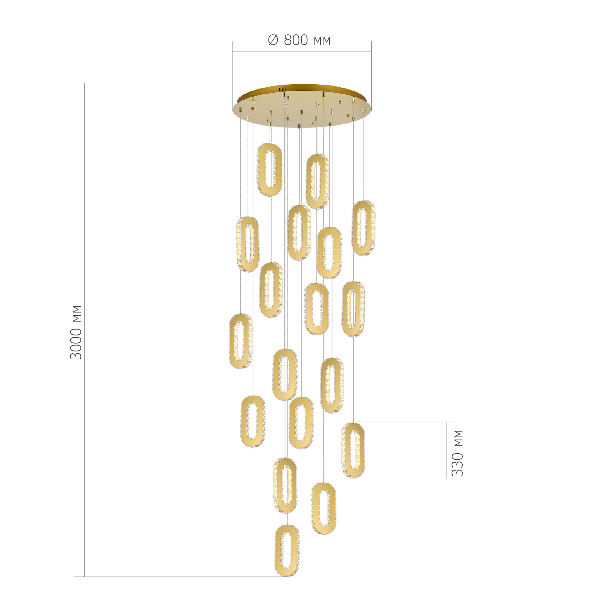 SL6506.203.18 Светильник подвесной ST-Luce Золотистый/Золотистый, Прозрачный LED 18*9W 3000K ALLUNGO