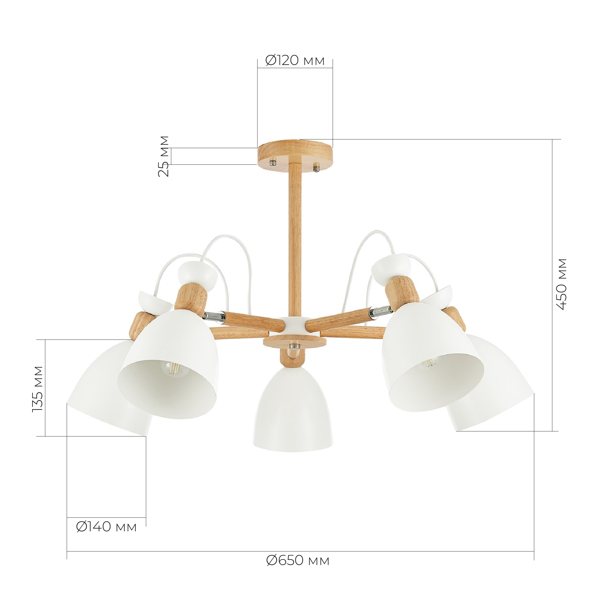 SLE103802-05 Светильник потолочный Светлое дерево, Белый/Белый E27 5*60W BALCAMO