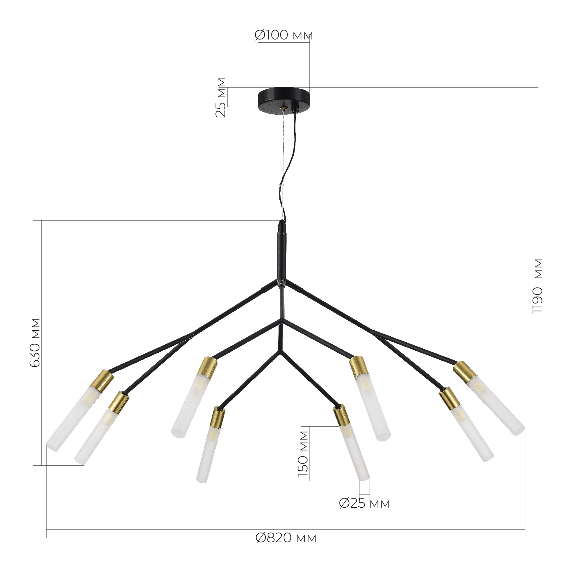 SLE1129-403-08 Светильник подвесной Черный, латунь/Белый G9 8*5W KAITO