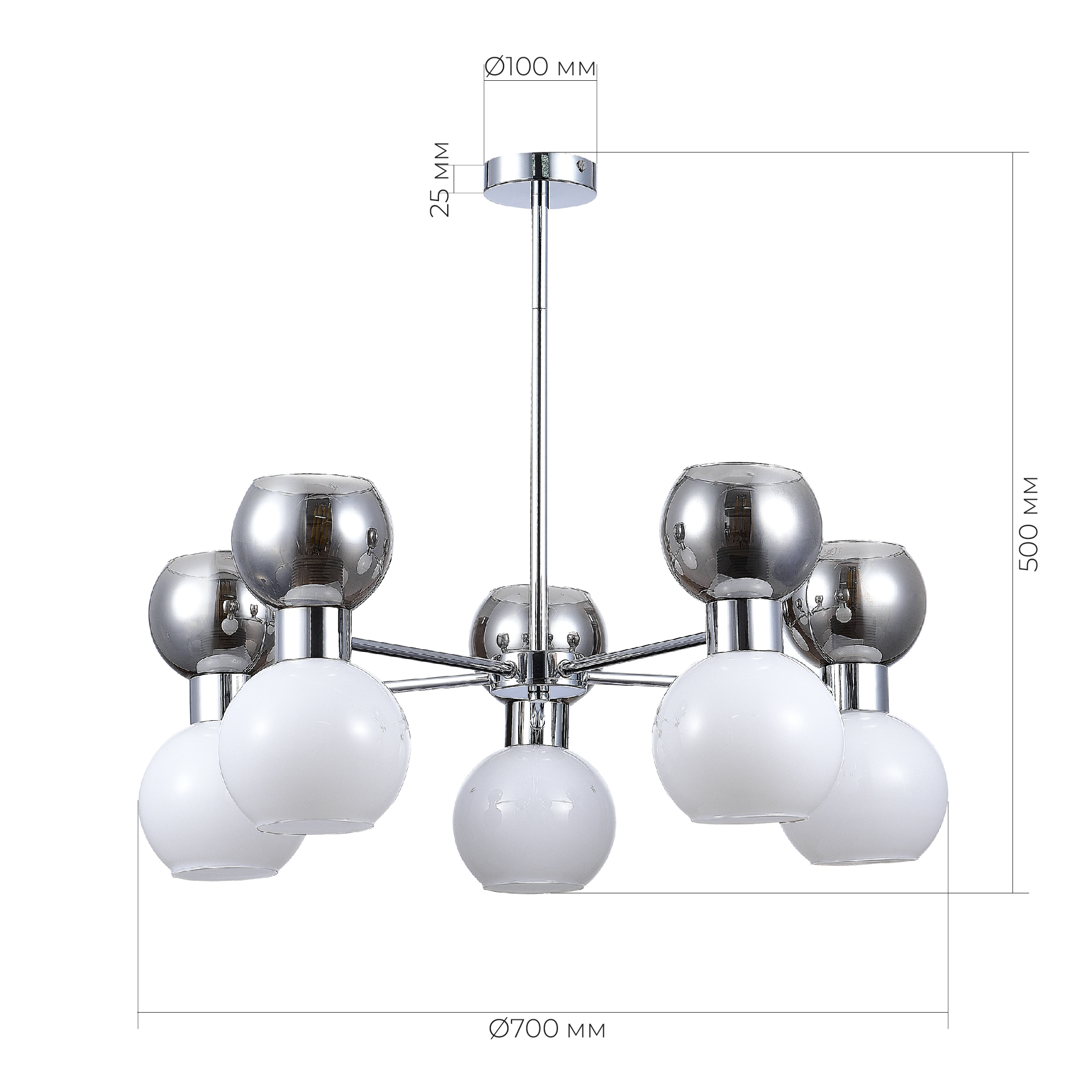 SLE1138-102-10 Светильник потолочный Хром/Белый, Дымчатый E27 10*60W THONET