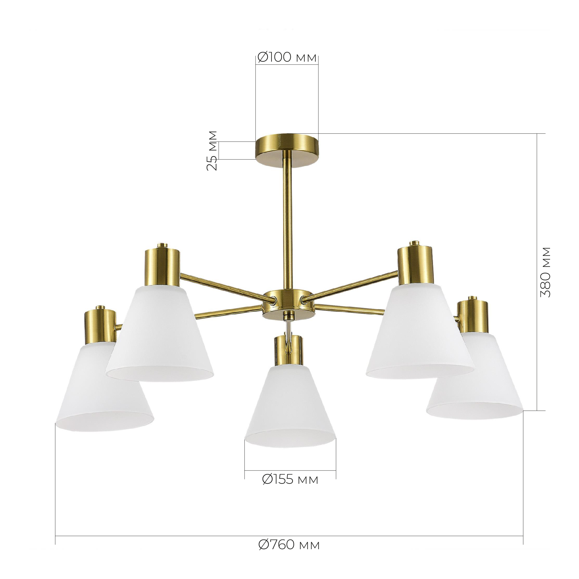 SLE1561-302-05 Светильник потолочный Латунь/Белый E27 5*60W ARKI