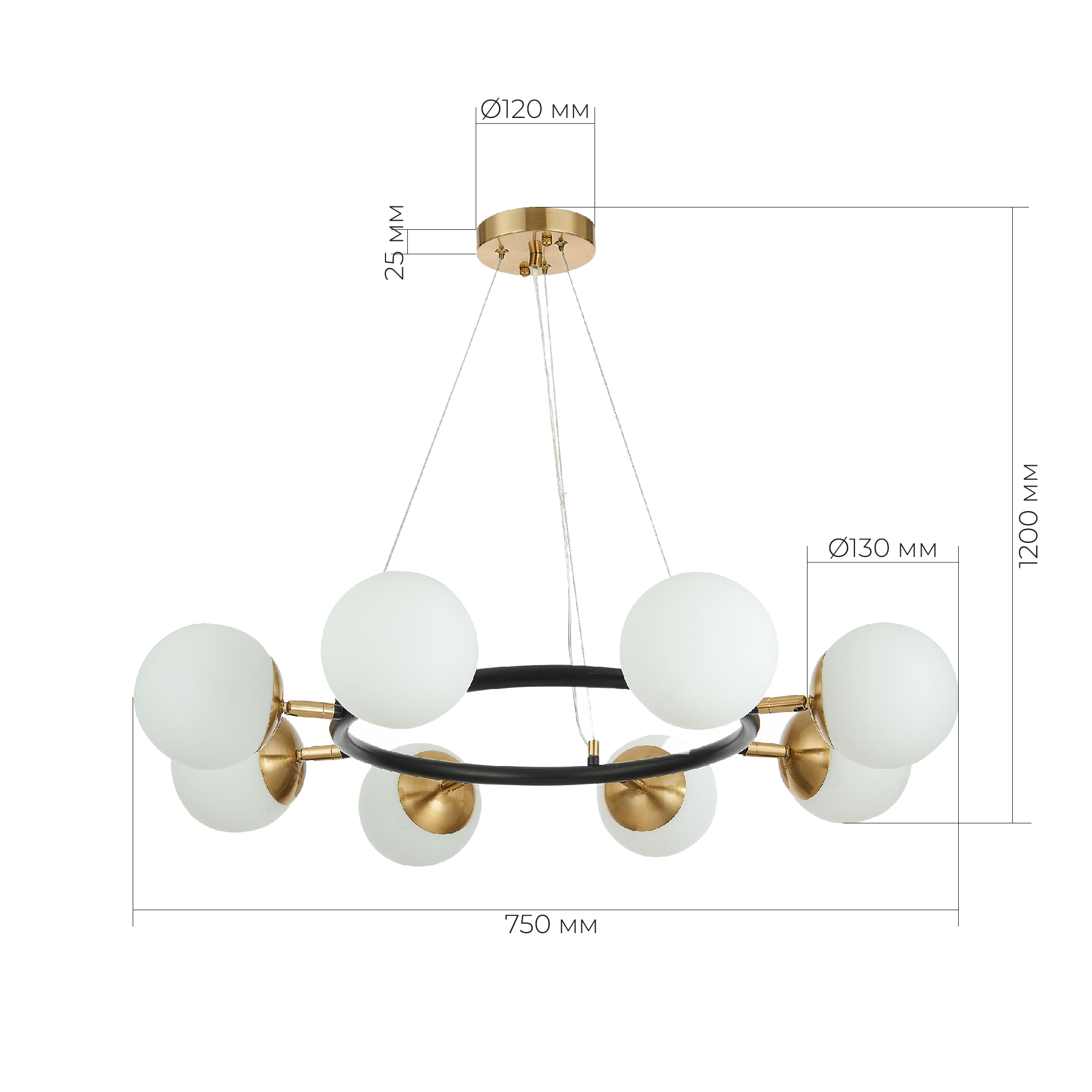 SLE220403-08 Светильник подвесной Черный, Латунь/Белый E27 8*60W FORLI