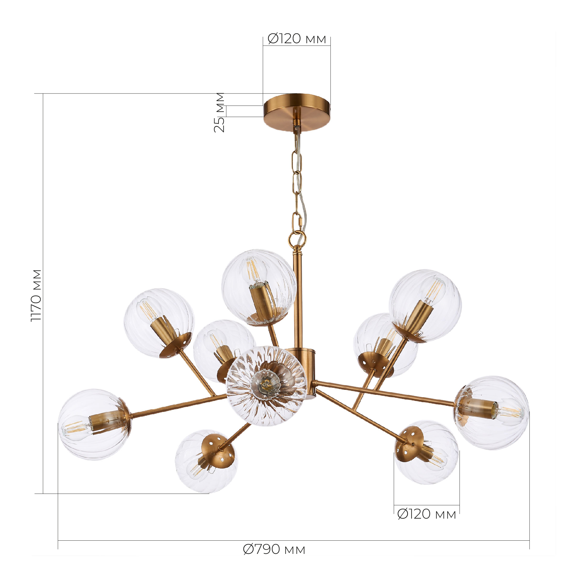 SLE220803-10 Светильник подвесной Латунь/Прозрачный E14 10*40W ANDRIA
