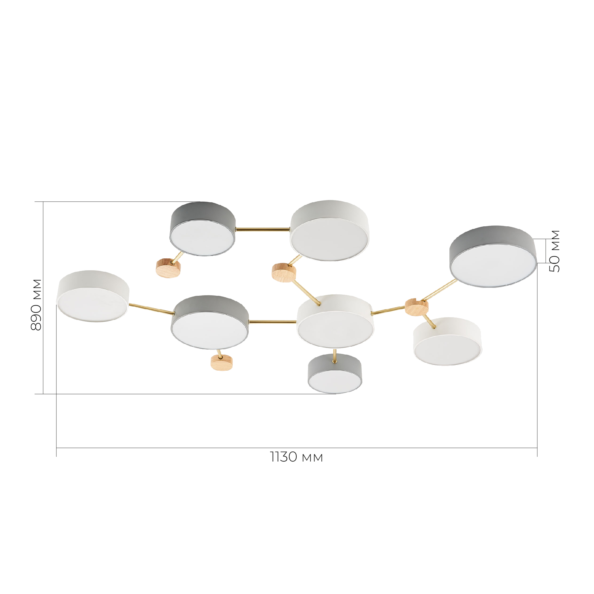 SLE600102-08 Светильник потолочный Золотистый, Светлое дерево/Белый, Серый LED 8*16,5W 4000K DOSSENA