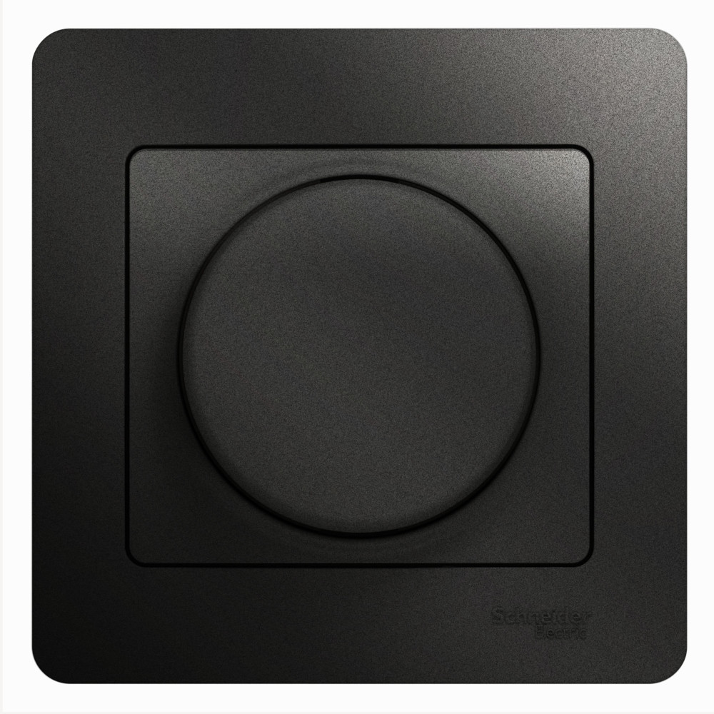 Светорегулятор Systeme Electric (ранее Schneider Electric) серии Glossa (в сборе, цвет антрацит) поворотный для нагрузки мощностью до 300 Вт.- Светорегулятор позволяет установить в помещении комфортный уровень освещения.- Выполнен из материала PС+ASA, стойкого к УФ-излучению и появлению царапин.