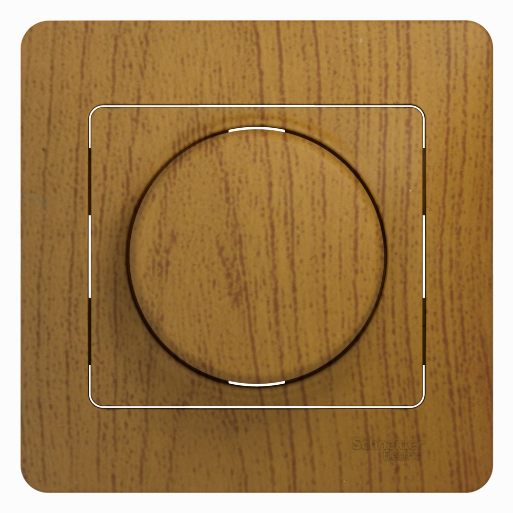Светорегулятор Systeme Electric (ранее Schneider Electric) серии Glossa (в сборе, цвет дерево дуб) поворотный для нагрузки мощностью до 630 Вт, подходит для LED ламп.- Светорегулятор позволяет установить в помещении комфортный уровень освещения.- При подключении второго переключателя диммер может использоваться как проходной переключатель.- Может использоваться как выключатель или переключатель.- Выполнен из материала PС+ASA, стойкого к УФ-излучению и появлению царапин.
