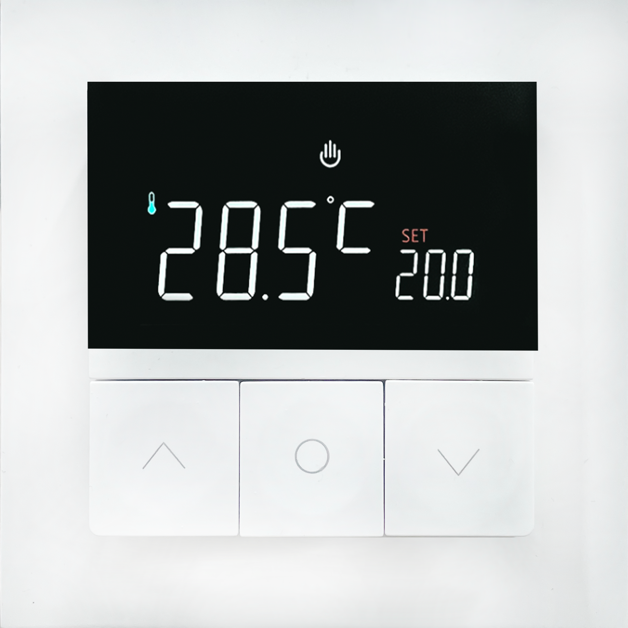 Термостат с датчиком пола, программируемый, 16 A, 55*55 мм.белый, клавиши настройки