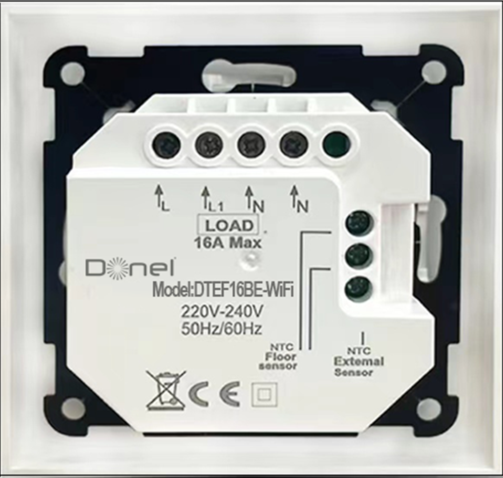Термостат с датчиком пола, с недельным программированием, с Wi-Fi , 16 A, 55*55 мм, черное стекло