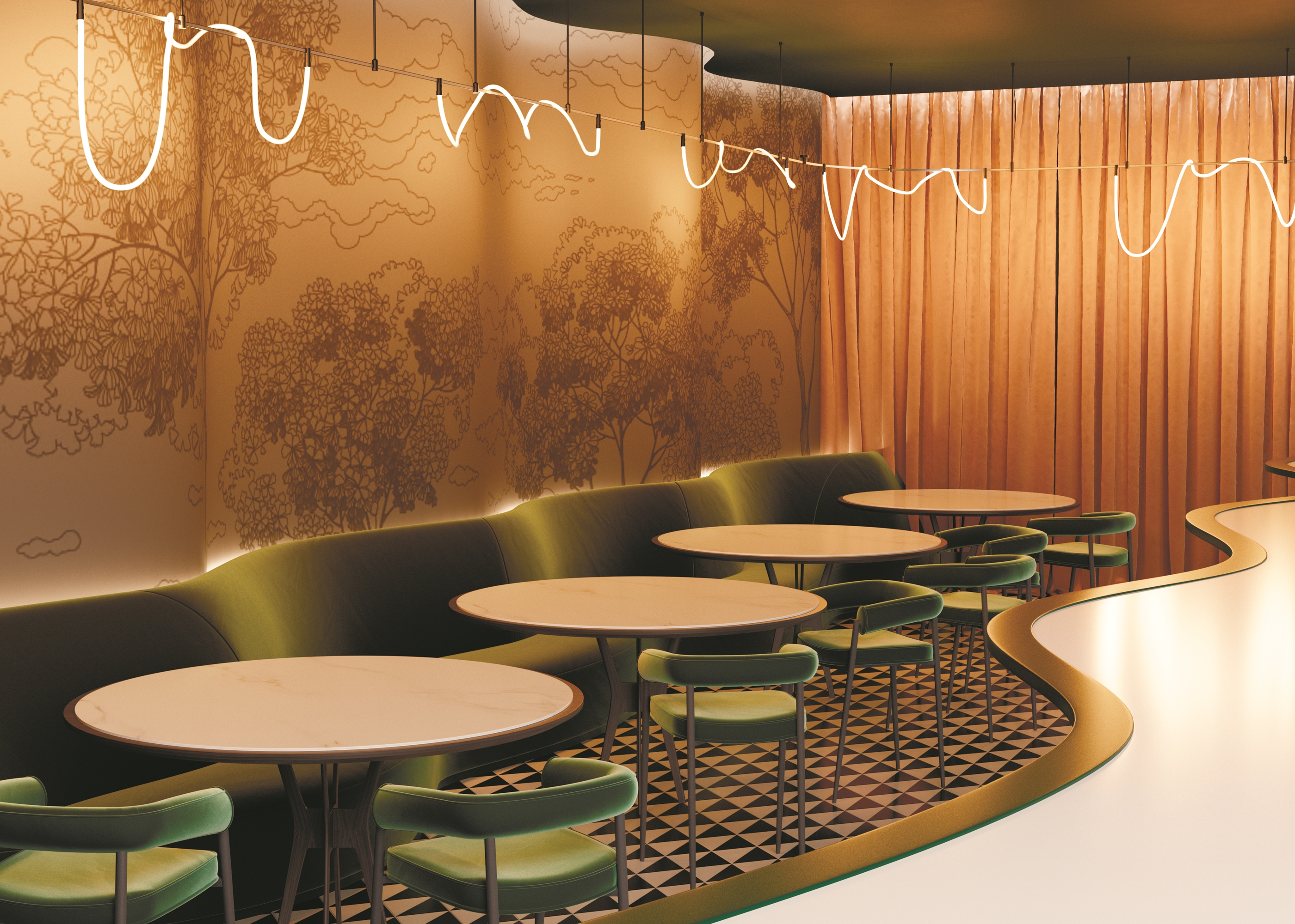 Стильный светильник в виде гибкого неона из прочного пластика, устойчивого к перепадам температур. Цвет арматуры — черный. Для серии характерна высокая плотность размещения светодиодов. ВЫсокая ощность 48 Вт позволяет использовать светильник в качестве основного освещения.