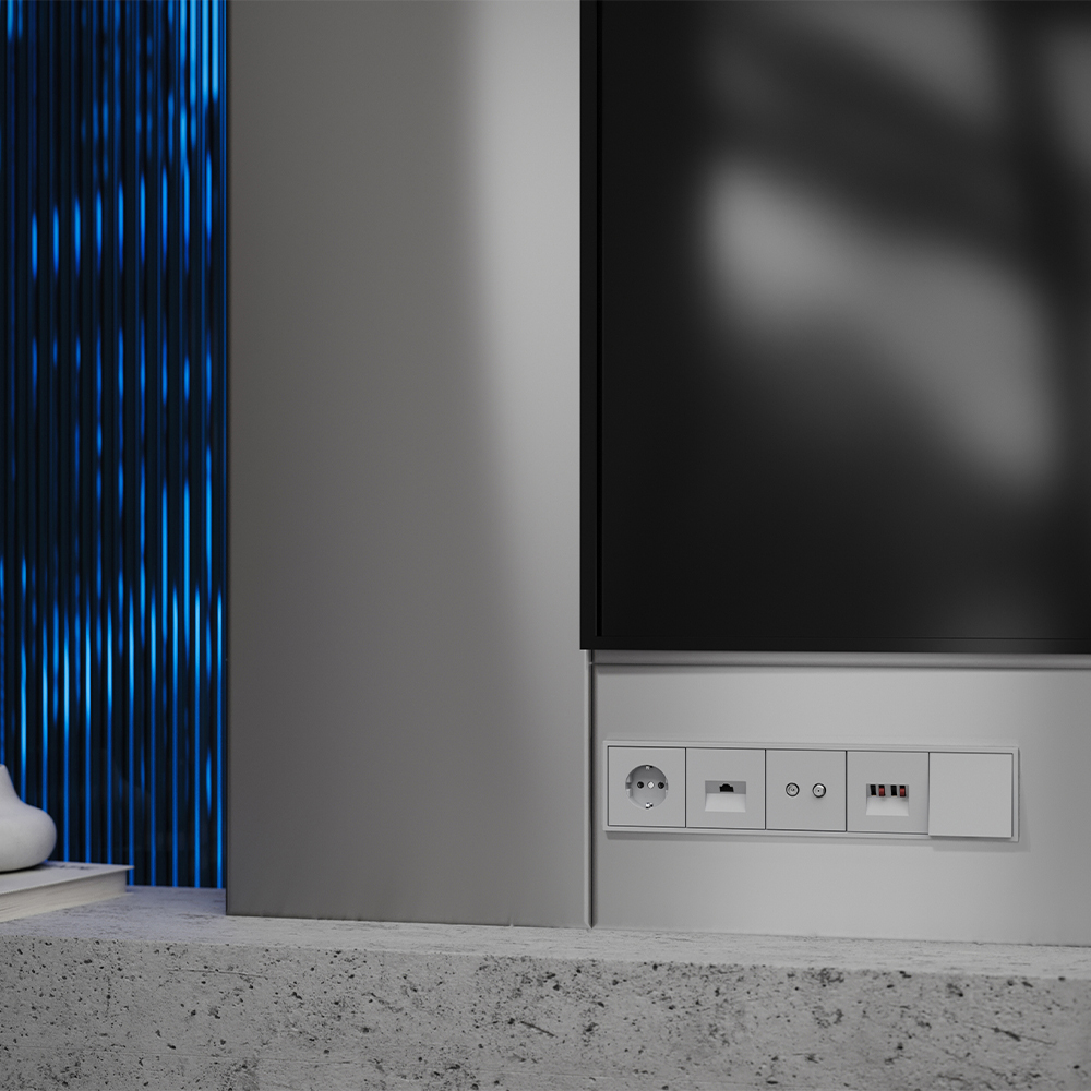 Модульная система серии S70 с раздельной поставкой механизмов, накладок и рамок позволяет монтировать электротехническую основу во время черновых работ, а выбор стилевого решения отложить до завершения дизайн-проекта. При смене интерьера вы легко обновите внешний вид, заменив только лицевые панели без вмешательства в проводку. Универсальный светло-серый цвет — совершенная ахроматическая основа для современных интерьеров. Он мягко объединяет элементы пространства, создавая сбалансированную и эстетически безупречную среду.