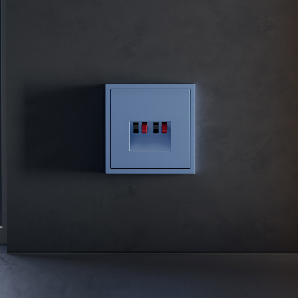 Модульная система серии S70 с раздельной поставкой механизмов, накладок и рамок позволяет монтировать электротехническую основу во время черновых работ, а выбор стилевого решения отложить до завершения дизайн-проекта. При смене интерьера вы легко обновите внешний вид, заменив только лицевые панели без вмешательства в проводку. Лёгкость и яркость оттенка "Деним" прекрасно комбинируется с голубо-бирюзовой палитрой. Он станет удачным выбором для детских пространств и интерьеров кафе, добавляя им живости и современности.