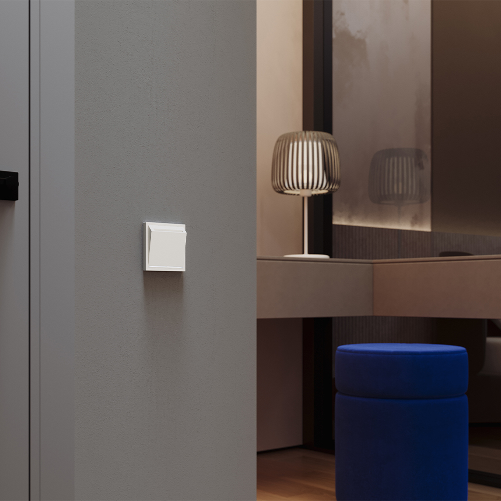 Модульная система серии S70 с раздельной поставкой механизмов, накладок и рамок позволяет монтировать электротехническую основу во время черновых работ, а выбор стилевого решения отложить до завершения дизайн-проекта. При смене интерьера вы легко обновите внешний вид, заменив только лицевые панели без вмешательства в проводку. Теплый сливочный цвет «Хлопок» наполняет пространство спокойствием и гармонией. Универсальный оттенок из палитры Benjamin Moore (OC-17) подчеркивает эстетику интерьера и служит идеальным дополнением для разнообразных дизайнерских решений.
