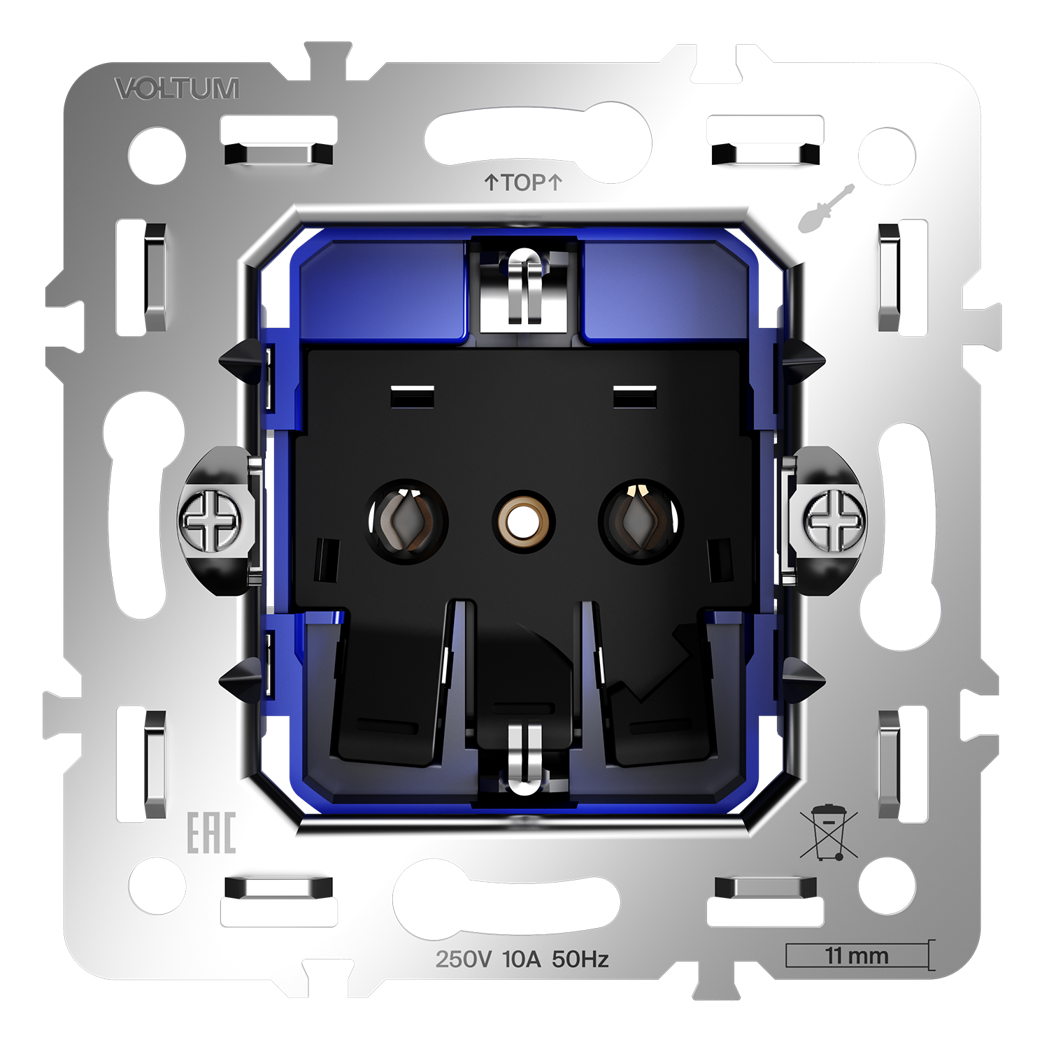 Место установки. Простота установки и демонтажа и высокое качество делают механизмы розеток Voltum идеальным выбором для дома, офиса или любых других помещений, соответствующих инструкции по эксплуатации. Конструктивные особенности. Контактные пары выполнены из бронзы, а заземляющие контакты — с дополнительным гальваническим покрытием. Бронза обеспечивает высокую безопасность при подключении электроприборов и эффективную бесперебойную передачу тока, сохраняя передаточное усилие, что повышает срок безотказной эксплуатации.