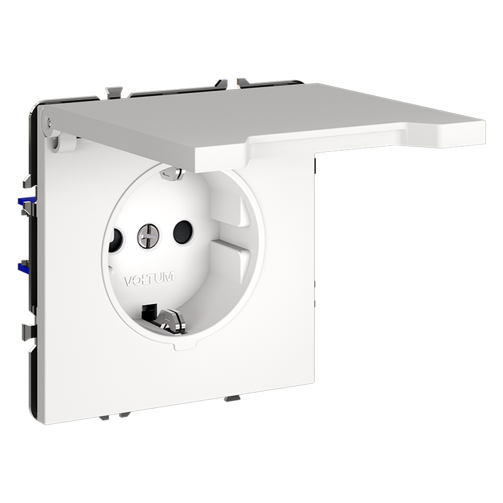 Розетка встраиваемая VOLTUM S70 с заземлением, защитными шторками и крышкой 16А, (белый матовый)