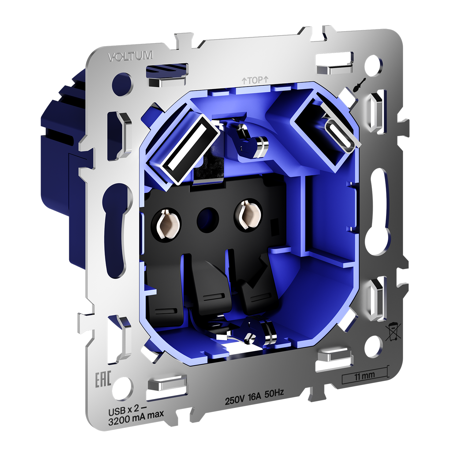 Место установки. Механизмы розеток с USB-разъемами применяются при установке современных зарядных решений в жилых и офисных помещениях. Они используются как основа USB-розетки и позволяют организовать удобную зарядку гаджетов без использования отдельных блоков питания. Конструктивные особенности. Мощность подключаемых приборов — до 20 Вт, сила тока — до 3,2 А. Этого достаточно для зарядки смартфонов, планшетов, ноутбуков, фотоаппаратов и других переносных устройств. USB типа C с технологией Quick Charge позволяет заряжать устройства в разы быстрее, чем обычные блоки питания. Разъем поддерживает одновременную зарядку нескольких гаджетов. Для монтажа механизма USB-розетки рекомендован углубленный подрозетник.