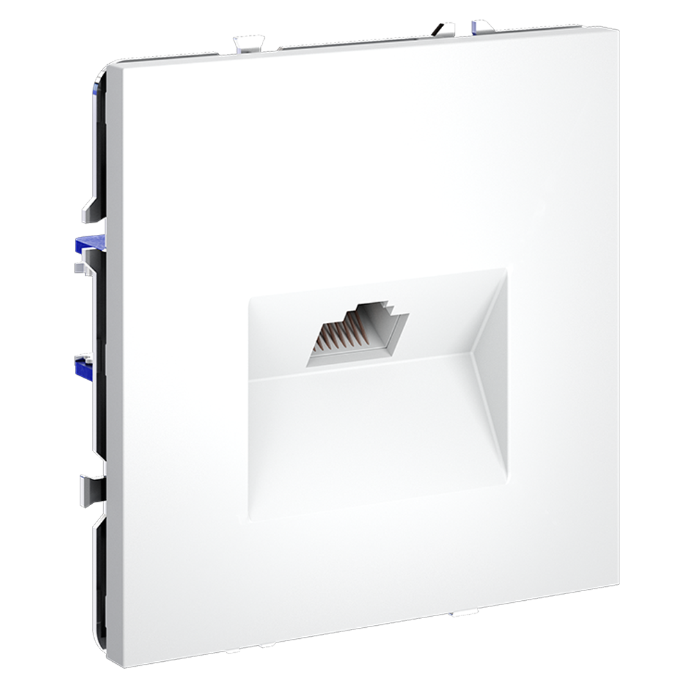 Место установки. Компьютерные розетки применяются в домашних и офисных сетях для подключения персонального компьютера, принтера, роутера или любого другого сетевого устройства к современным информационным системам. Корпус. Розетка выполнена в фирменной стилистике Voltum. Внешние материалы — это поликарбонат высокой прочности. Устройство оборудовано специальным сетевым разъемом (или сразу двумя у модели RJ45+RJ45). Конструктивные особенности. Компьютерная розетка RJ45 совместима с информационными сетями шестого поколения со скоростью передачи данных до 10 Гбит/сек. Также она поддерживает стандарт 5e. Подключение к конечному устройству выполняется через сетевой кабель (витую пару) Серия S70 доступна в модульной системе: механизм, накладка и рамка поставляются отдельно.