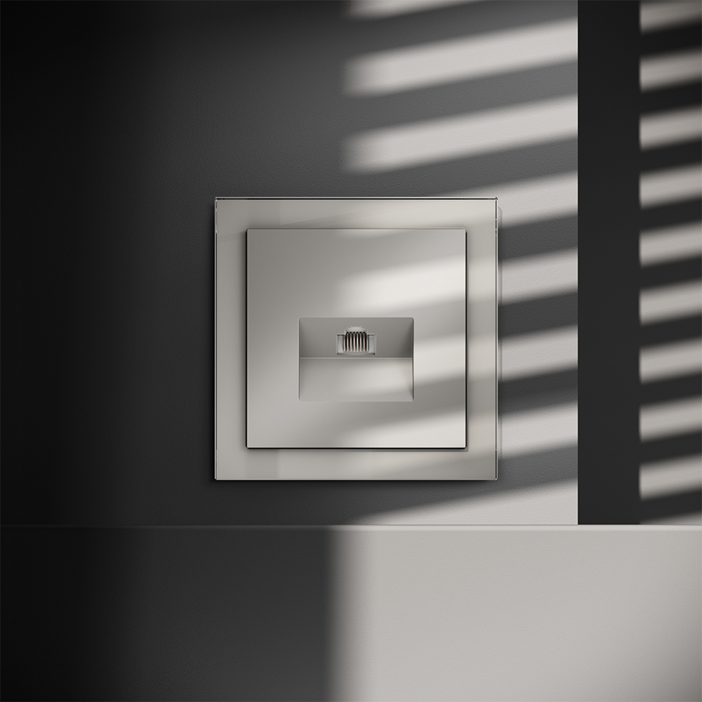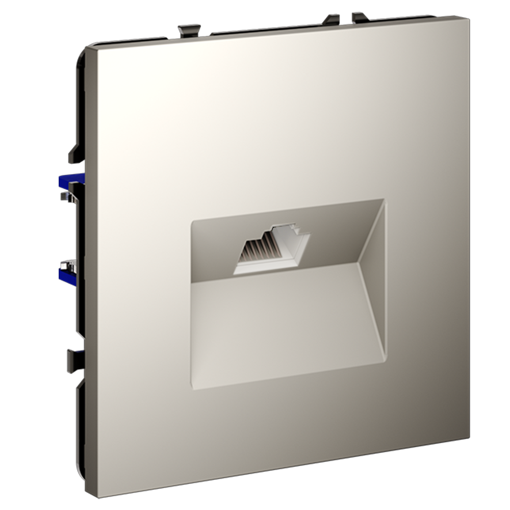 Место установки. Компьютерные розетки применяются в домашних и офисных сетях для подключения персонального компьютера, принтера, роутера или любого другого сетевого устройства к современным информационным системам. Корпус. Розетка выполнена в фирменной стилистике Voltum. Внешние материалы — это поликарбонат высокой прочности. Устройство оборудовано специальным сетевым разъемом (или сразу двумя у модели RJ45+RJ45). Конструктивные особенности. Компьютерная розетка RJ45 совместима с информационными сетями шестого поколения со скоростью передачи данных до 10 Гбит/сек. Также она поддерживает стандарт 5e. Подключение к конечному устройству выполняется через сетевой кабель (витую пару) Серия S70 доступна в модульной системе: механизм, накладка и рамка поставляются отдельно.