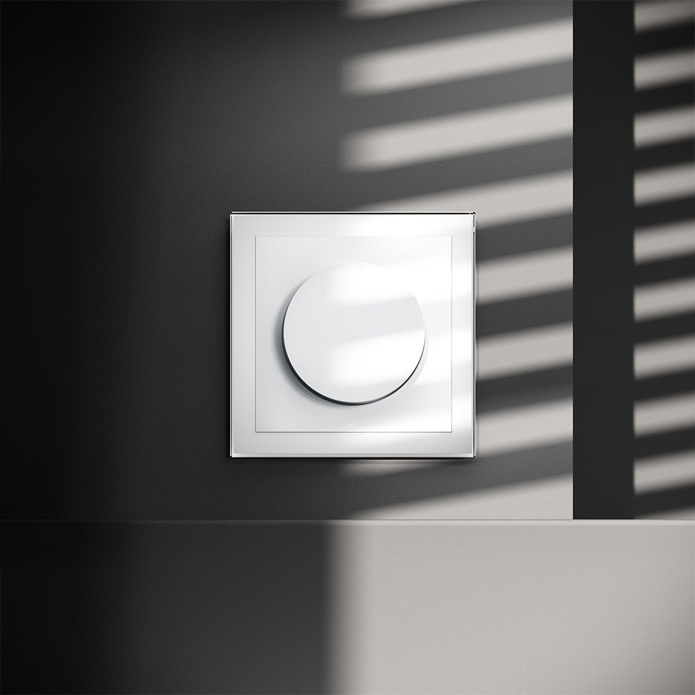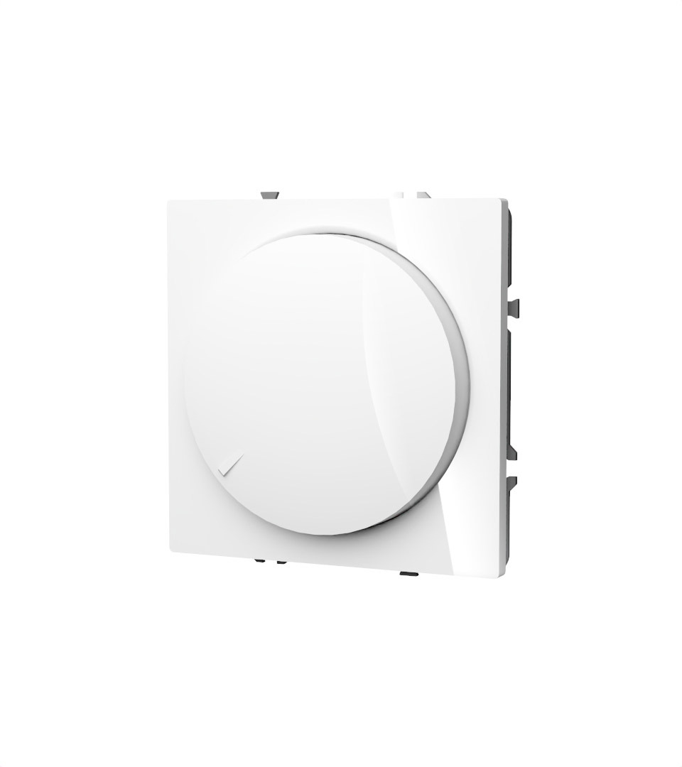 Место установки. Светорегулятор необходим для управления яркостью освещения в помещении. Устройство совместимо с любым источником света, поддерживающим фазное диммирование. Корпус. Светорегулятор выполнен в виде вращающейся кнопки, позволяющей регулировать яркость в широком диапазоне. При нажатии на нее устройство работает как выключатель (включает/выключает освещение). Корпус — устойчивый к повреждениям и нагреву поликарбонат. Конструктивные особенности. Максимальная резистивная нагрузка светорегулятора — 300 Вт, минимальная — 5 Вт. Можно подключить устройство как обычный выключатель или по проходной схеме. Диммирование базируется на методе отсечения по заднему фронту, что гарантирует совместимость со светодиодными лампами и исключает появление резких колебаний напряжения. Ток увеличивается плавно, что особенно важно для сохранения производительности и долговечности светодиодных источников. Предусмотрена регулировка ограничения минимального уровня яркости (под накладкой механизм...