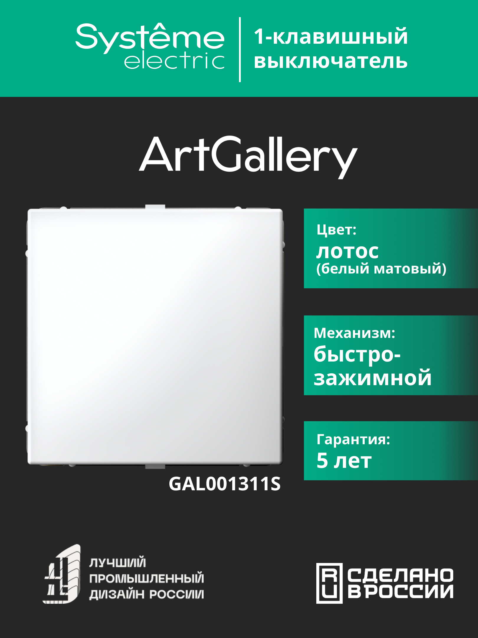 Механизм с быстрозажимными клеммами Systeme Electric серии ArtGallery в цвете лотос выключателя 1-клавишного подходит для сетей 250 В, на ток 10 А. С помощью новых быстрозажимных клемм монтаж стал быстрее. Для подключения не требуется отвертка. Решение для ценителей матовых поверхностей в интерьере, к которым приятно прикоснуться. Лицевые детали из качественного ABS-пластика, устойчивого к царапинам и УФ-излучению. Лучший промышленный дизайн (по итогам премии Минпромторг 2023).