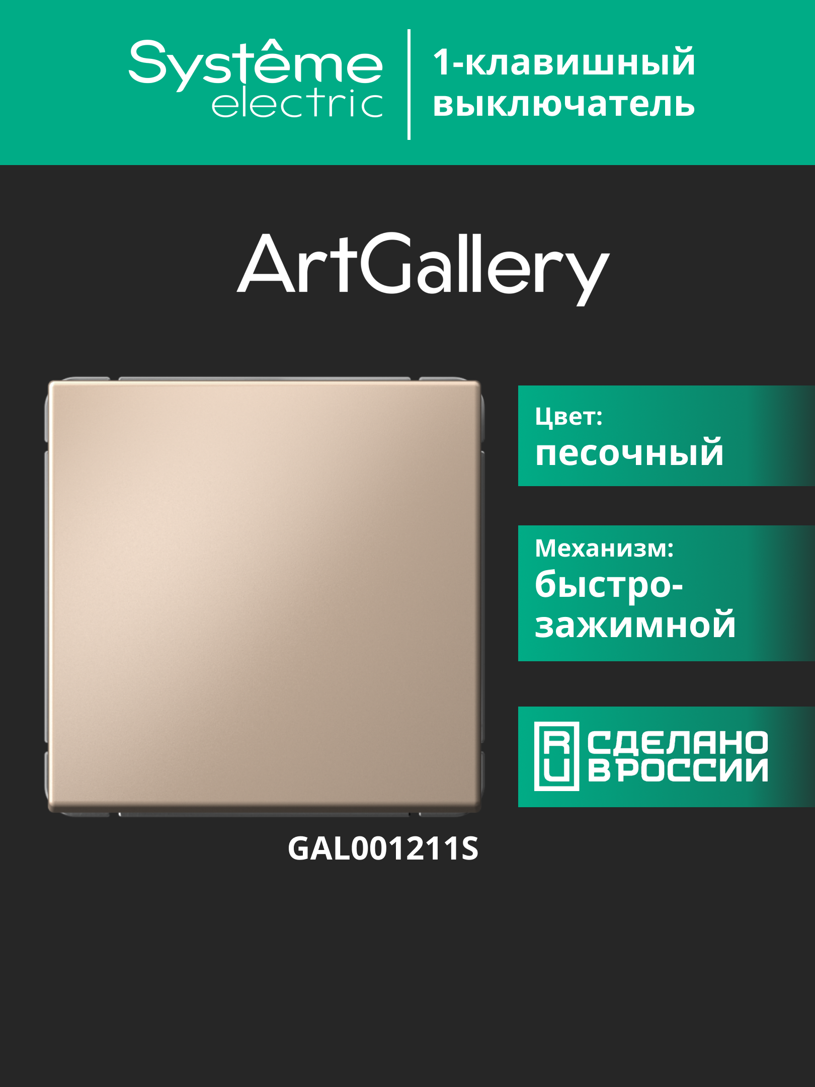 Механизм с быстрозажимными клеммами Systeme Electric серии ArtGallery в цвете песочный выключателя 1-клавишного подходит для сетей 250 В, на ток 10 А. С помощью новых быстрозажимных клемм монтаж стал быстрее. Для подключения не требуется отвертка. Трендовый оттенок позволит удачно подчеркнуть стиль интерьера и правильно расставить акценты. Лицевые детали из качественного ABS-пластика, устойчивого к царапинам и УФ-излучению. Лучший промышленный дизайн (по итогам премии Минпромторг 2023).