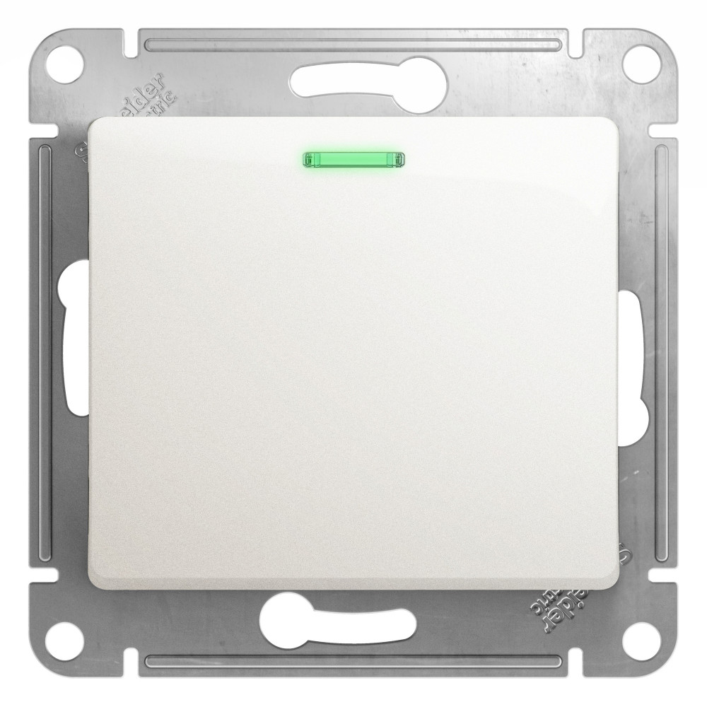Механизм Systeme Electric (ранее Schneider Electric) серии Glossa (цвет перламутр) выключателя 1-клавишного с подсветкой подходит для сетей 250 В, на ток 10 А. Благодаря современной светодиодной подсветке зеленого цвета изделие легко найти в темноте. Выполнен из материала PС+ASA, стойкого к УФ-излучению и появлению царапин. Эргономичные клеммы расположены в два ряда: сверху и снизу.