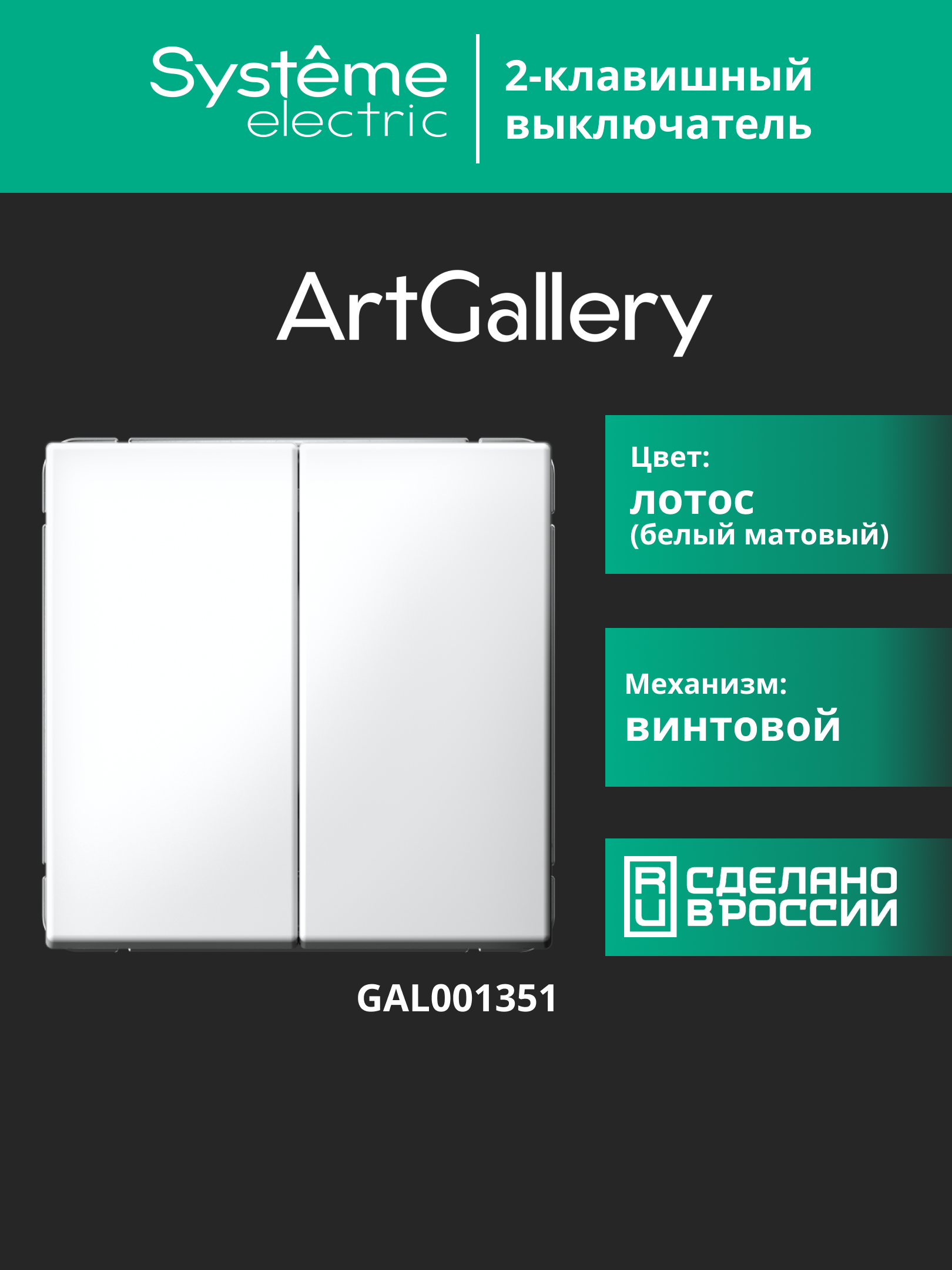 Механизм выключателя 2-клавишного Systeme Electric серии ArtGallery в цвете лотос подходит для сетей 250 В, на ток 10 А.Решение для ценителей матовых поверхностей в интерьере, к которым приятно прикоснуться.Двухклавишный выключатель позволяет управлять двумя источниками света с одной точки.Лицевые детали из качественного ABS-пластика, устойчивого к царапинам и УФ-излучению.Лучший промышленный дизайн (по итогам премии Минпромторг 2023).