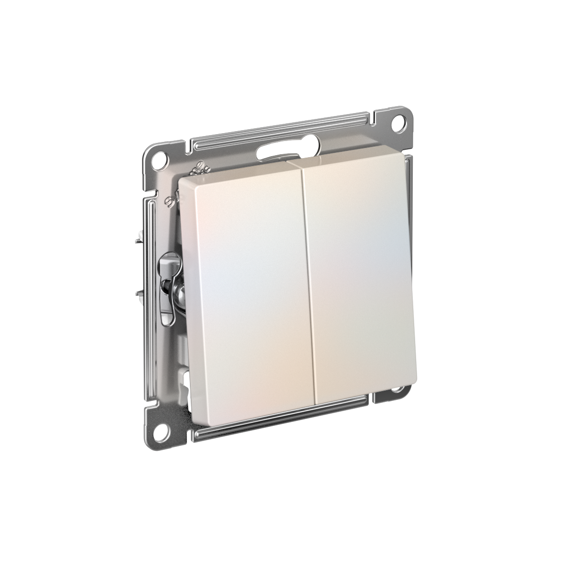 Механизм выключателя 2-клавишного Systeme Electric (ранее Schneider Electric) серии AtlasDesign в цвете жемчуг подходит для сетей 250 В, на ток 10 А. Двухклавишный выключатель позволяет управлять двумя источниками света с одной точки. Лицевые детали из качественного ABS-пластика, устойчивого к царапинам и УФ-излучению. Усиленные прямые монтажные лапки для лучшей фиксации механизма в монтажной коробке.