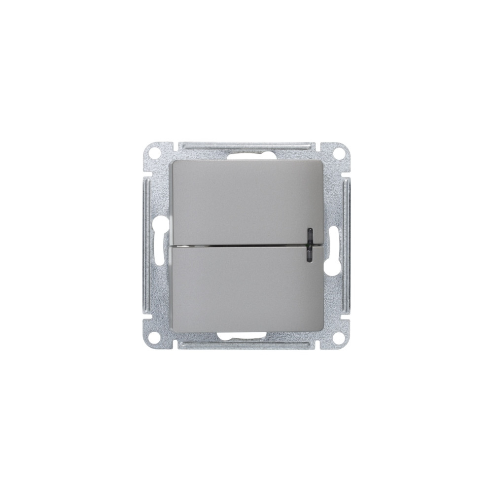 Механизм Systeme Electric (ранее Schneider Electric) серии Glossa (цвет платина) выключателя 2-клавишного с подсветкой подходит для сетей 250 В, на ток 10 А. Благодаря современной светодиодной подсветке зеленого цвета изделие легко найти в темноте. Двухклавишный выключатель позволяет управлять двумя источниками света с одной точки. Выполнен из материала PС+ASA, стойкого к УФ-излучению и появлению царапин. Эргономичные клеммы расположены в два ряда: сверху и снизу.