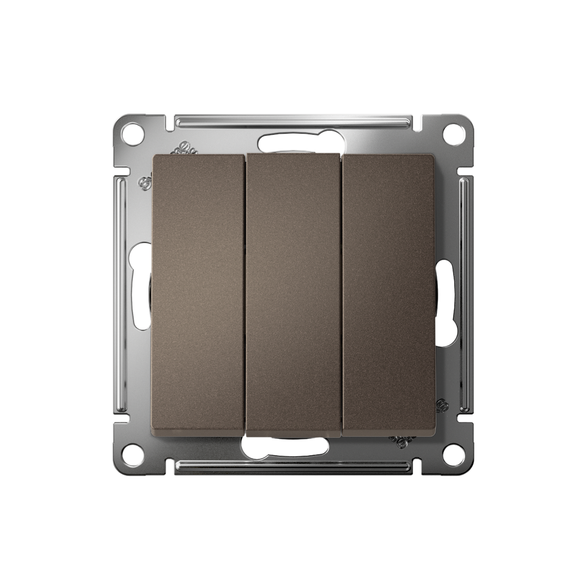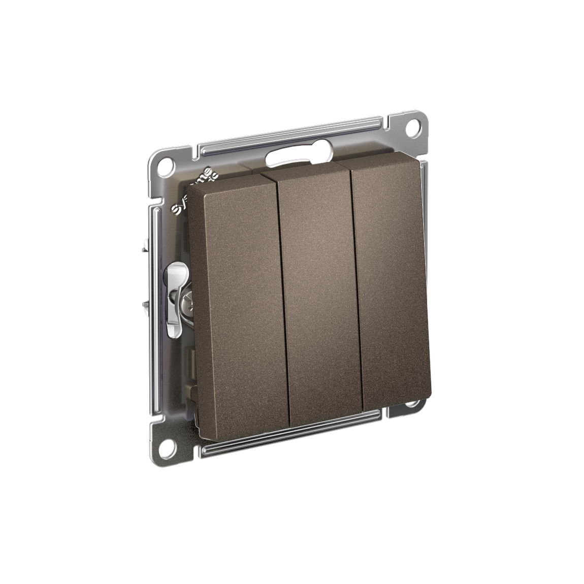 Механизм Systeme Electric (ранее Schneider Electric) серии AtlasDesign в цвете мокко выключателя 3-клавишного подходит для сетей 250 В, на ток 10 А. Трёхклавишный выключатель позволяет управлять тремя источниками света из одной точки. Лицевые детали из качественного ABS-пластика, устойчивого к царапинам и УФ-излучению. Усиленные прямые монтажные лапки для лучшей фиксации механизма в монтажной коробке.