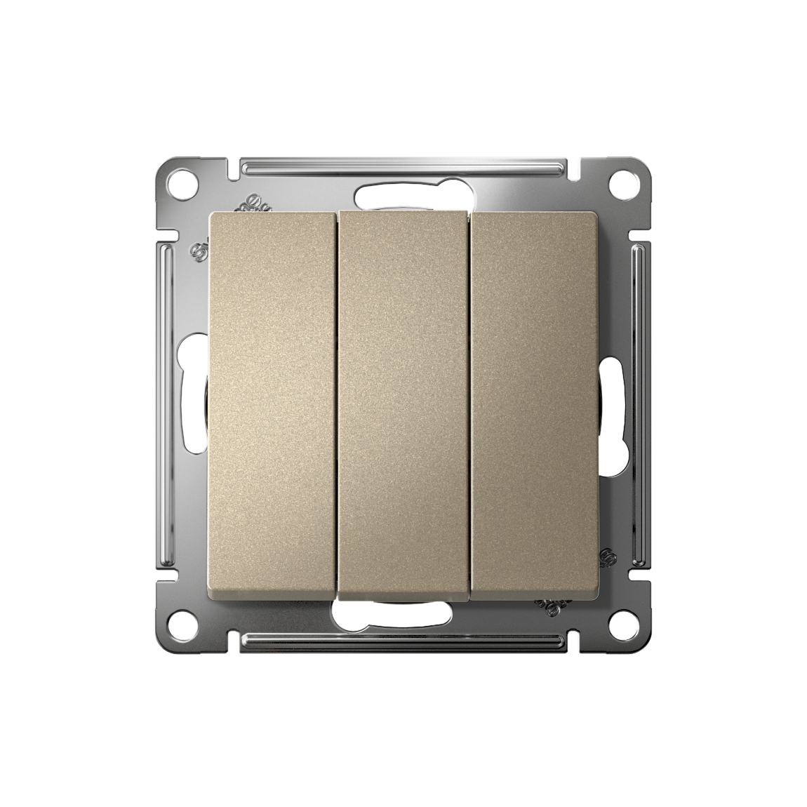 Механизм Systeme Electric (ранее Schneider Electric) серии AtlasDesign в цвете шампань выключателя 3-клавишного подходит для сетей 250 В, на ток 10 А. Трёхклавишный выключатель позволяет управлять тремя источниками света из одной точки. Лицевые детали из качественного ABS-пластика, устойчивого к царапинам и УФ-излучению. Усиленные прямые монтажные лапки для лучшей фиксации механизма в монтажной коробке.