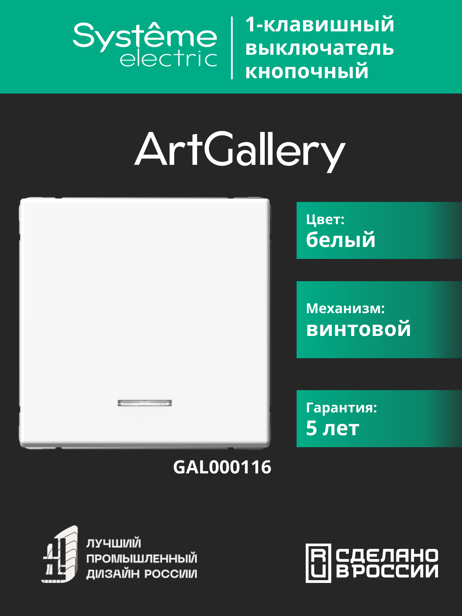 Механизм Systeme Electric серии ArtGallery в цвете белый выключателя 1-клавишного с самовозвратом и подсветкой подходит для сетей 250 В, на ток 10 А. Пластик с ионами серебра в белом цвете обеспечивает антибактериальный эффект.Лицевые детали из качественного ABS-пластика, устойчивого к царапинам и УФ-излучению. Лучший промышленный дизайн (по итогам премии Минпромторг 2023).