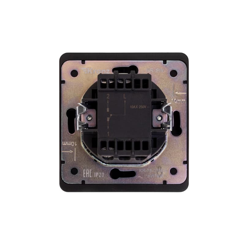 Механизм одноклавишного переключателя скрытой установки KRANZ предназначен для подключения к электрической сети внутри помещений. Используется для управления светом из двух мест.Благодаря лаконичной форме корпуса и цвету оникс устройство гармонично дополнит любой интерьер.Сечение проводников составляет 1,5-2,5 мм².