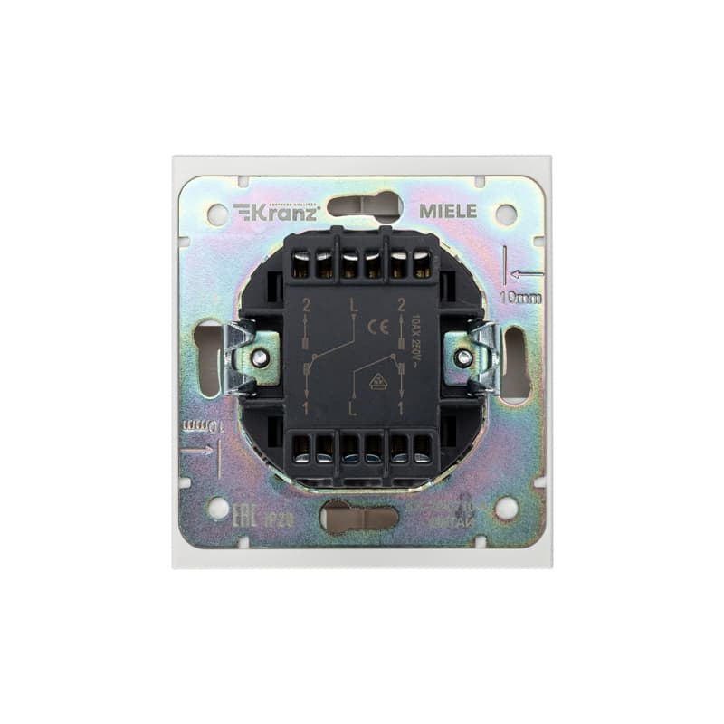 Механизм одноклавишного переключателя скрытой установки KRANZ предназначен для подключения к электрической сети внутри помещений. Используется для управления светом из нескольких мест.Благодаря лаконичной форме корпуса и белому цвету устройство гармонично дополнит любой интерьер.Сечение проводников составляет 1,5-2,5 мм².