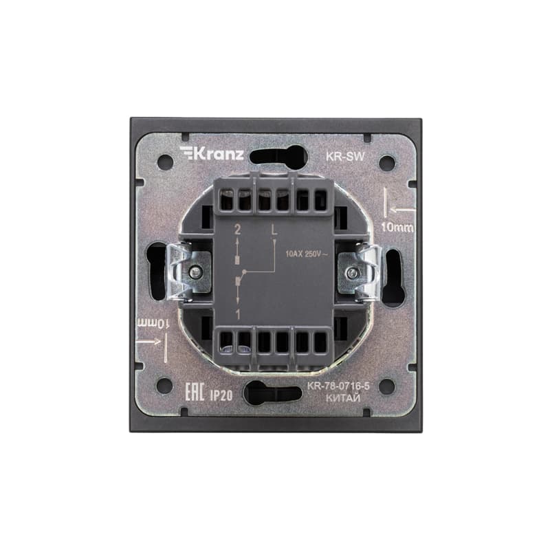 Механизм одноклавишного переключателя скрытой установки KRANZ предназначен для подключения к электрической сети внутри помещений. Используется для управления светом из двух мест.Подсветка позволяет без труда найти выключатель в темном помещении.Благодаря лаконичной форме корпуса и благородному антрацитовому цвету устройство гармонично дополнит любой интерьер.Сечение проводников составляет 1,5-2,5 мм².