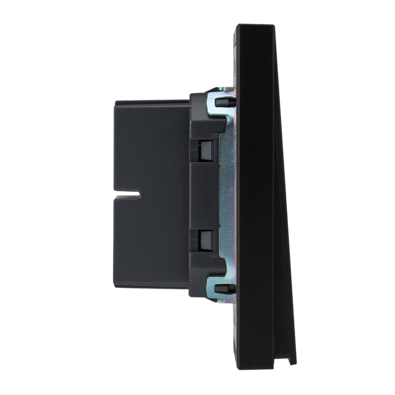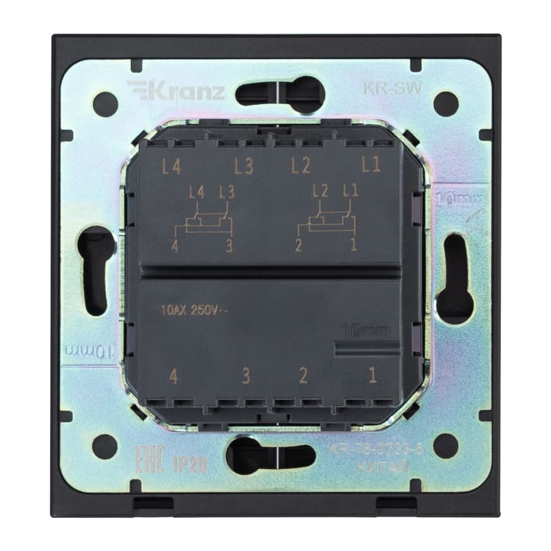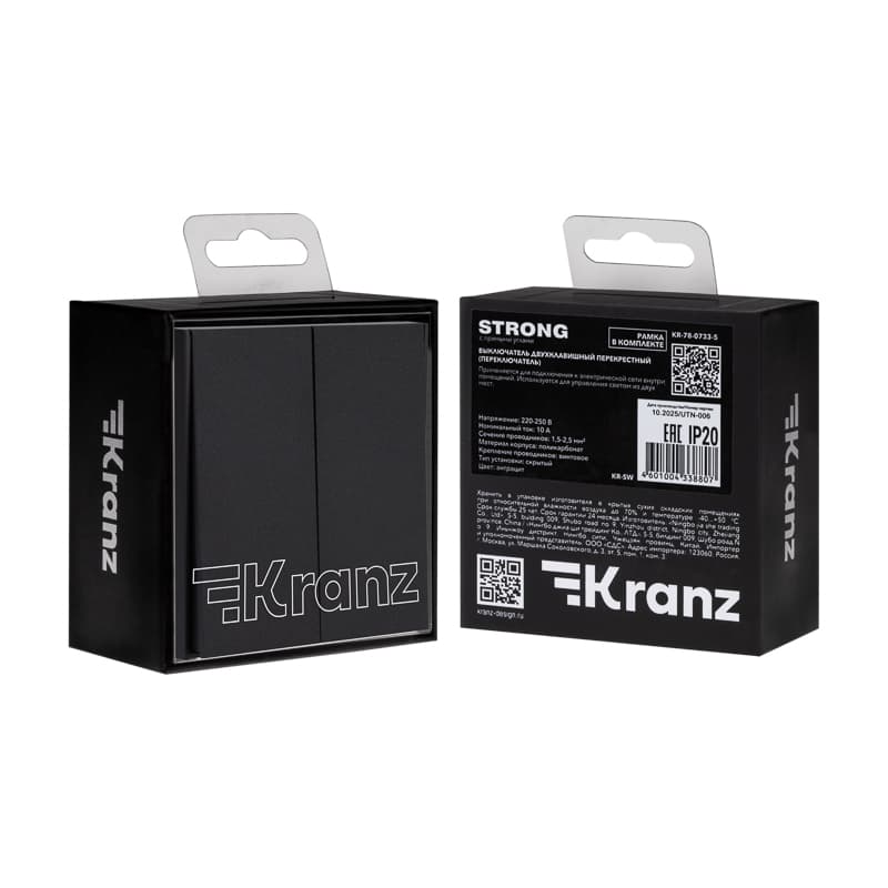 Механизм двухклавишного переключателя скрытой установки KRANZ предназначен для управления светом из нескольких мест. Широкоформатная лицевая клавиша изготовлена из поликарбоната высокого качества: не царапается и устойчива к повреждениям. Ресурс переключающего механизма — 100 000 циклов. Суппорт с центровочными слотами для установки в ряд имеет дополнительное антикоррозийное покрытие. Насечки на винте препятствуют его отвинчиванию в процессе эксплуатации, а насечки на зажимных пластинах повышают надежность удержания провода. Предусмотрено анкерное крепление для дополнительной фиксации. Выключатель серии STRONG отличается прямыми углами и фактурной поверхностью: такой дизайн гармонично сочетается с любым стилем интерьера — от утонченной классики до смелого хай-тека. В комплекте поставляется ультратонкая рамка менее 1 см: устройство сразу готово к установке и использованию.