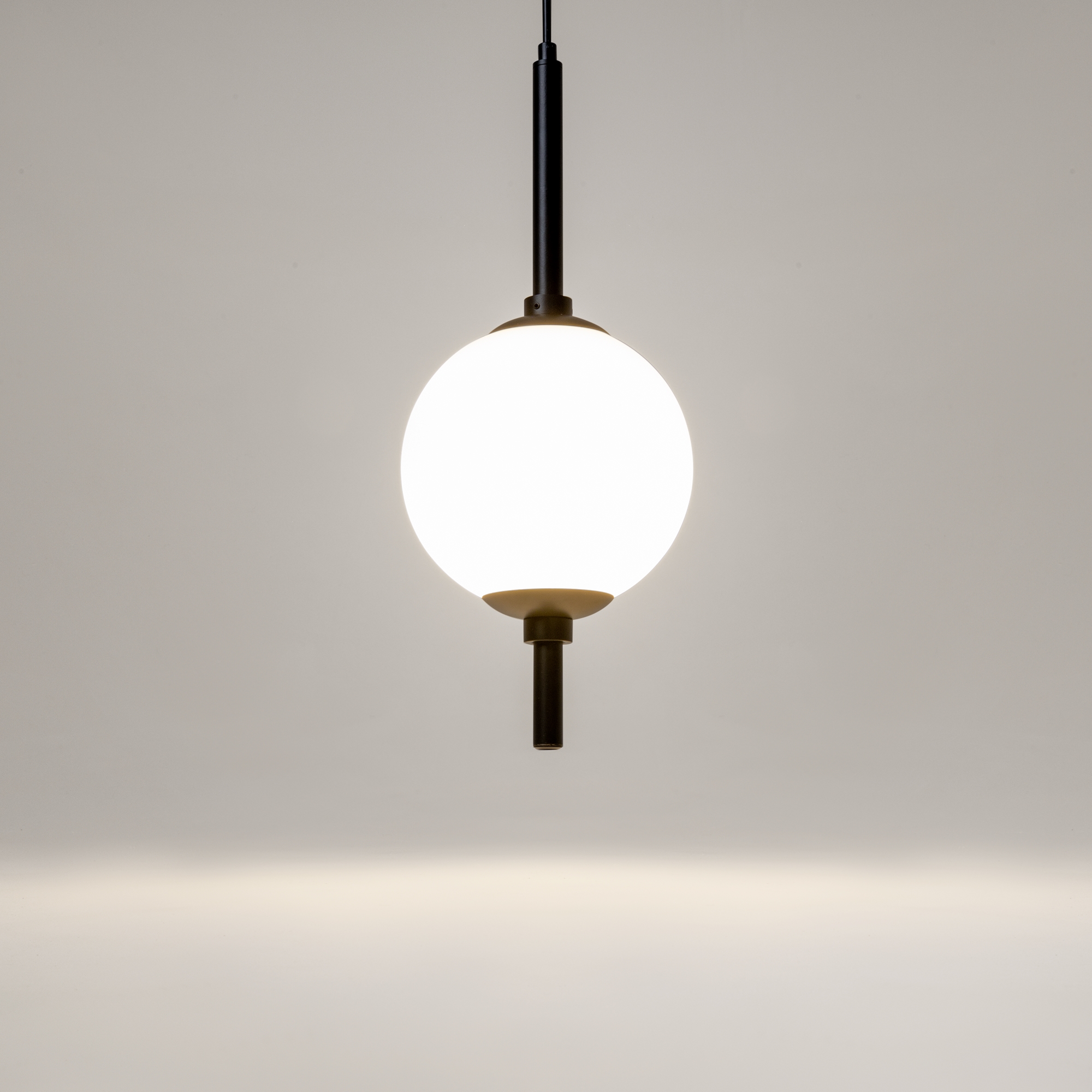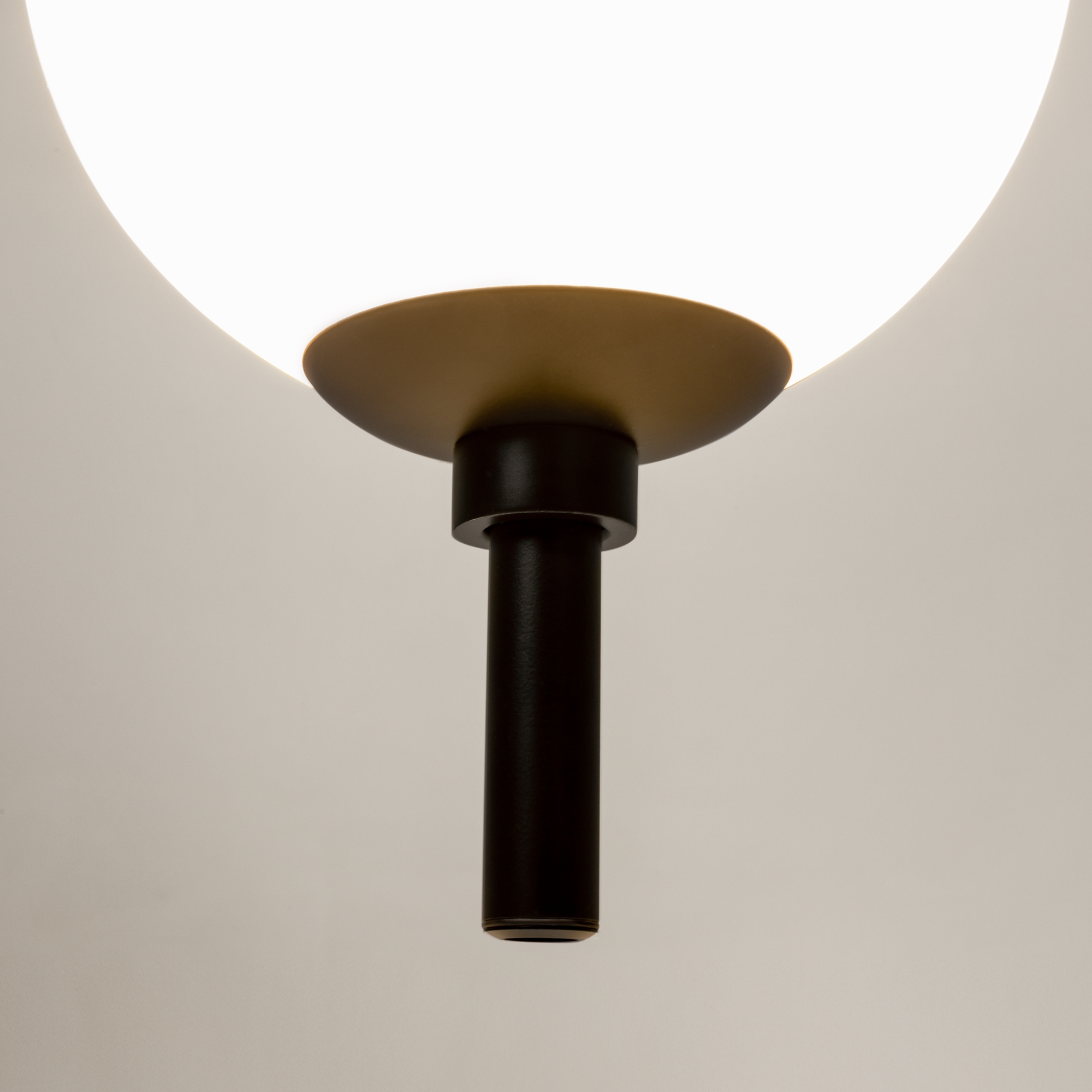 Металлическая арматура в черном цвете. Плафоны-сферы из белого стекла. LED-источник света с цветовой температурой 3000К. Удобные выключатели вверхней части арматуры. Функция раздельного включения световых элементов